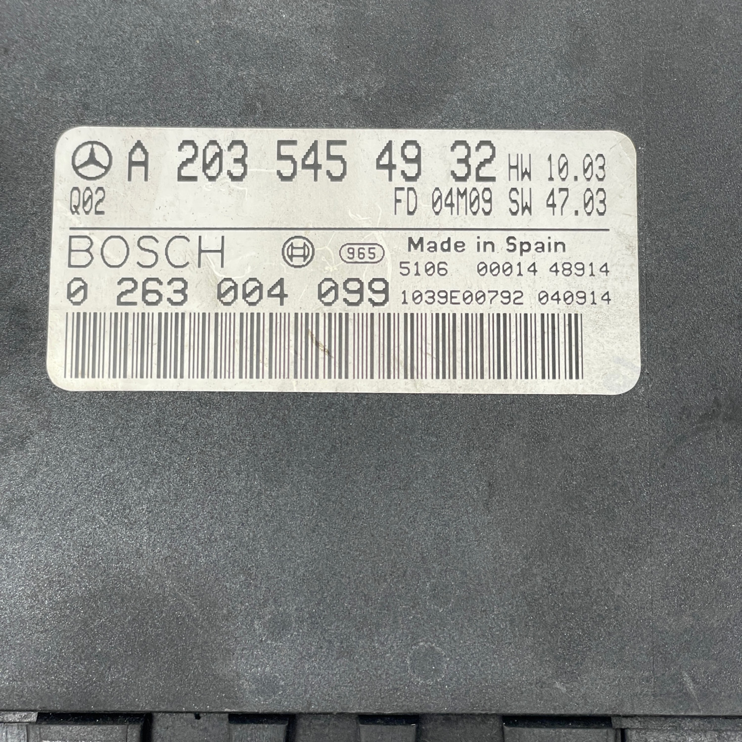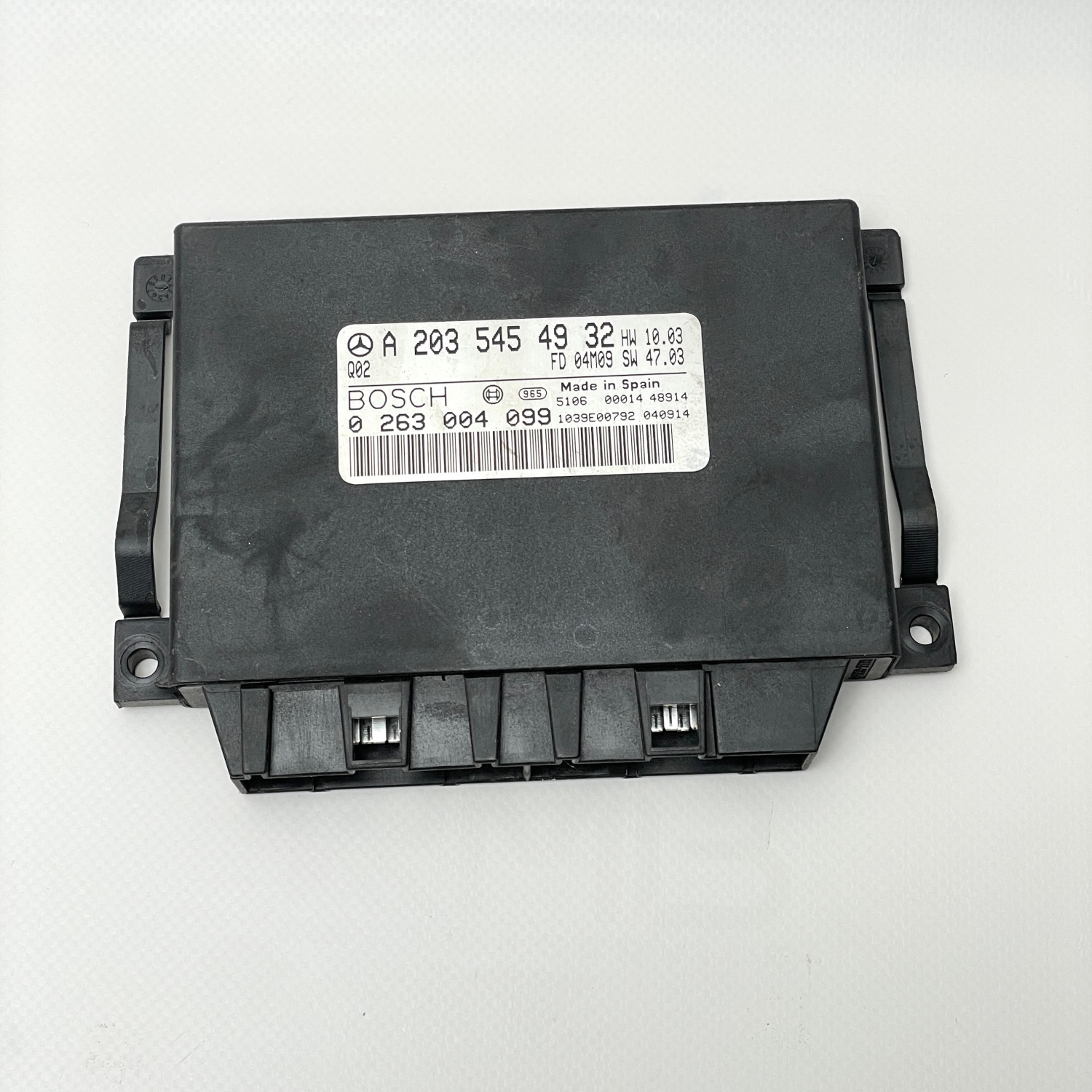 Блок управления демонтирован с автомобиля-донора без повреждений корпуса и разъемов. Контактные группы в исправном состоянии, следы влаги или вмешательства в электронику отсутствуют. Оригинальная деталь Mercedes соответствует заводским параметрам и подходит для установки без доработок.
