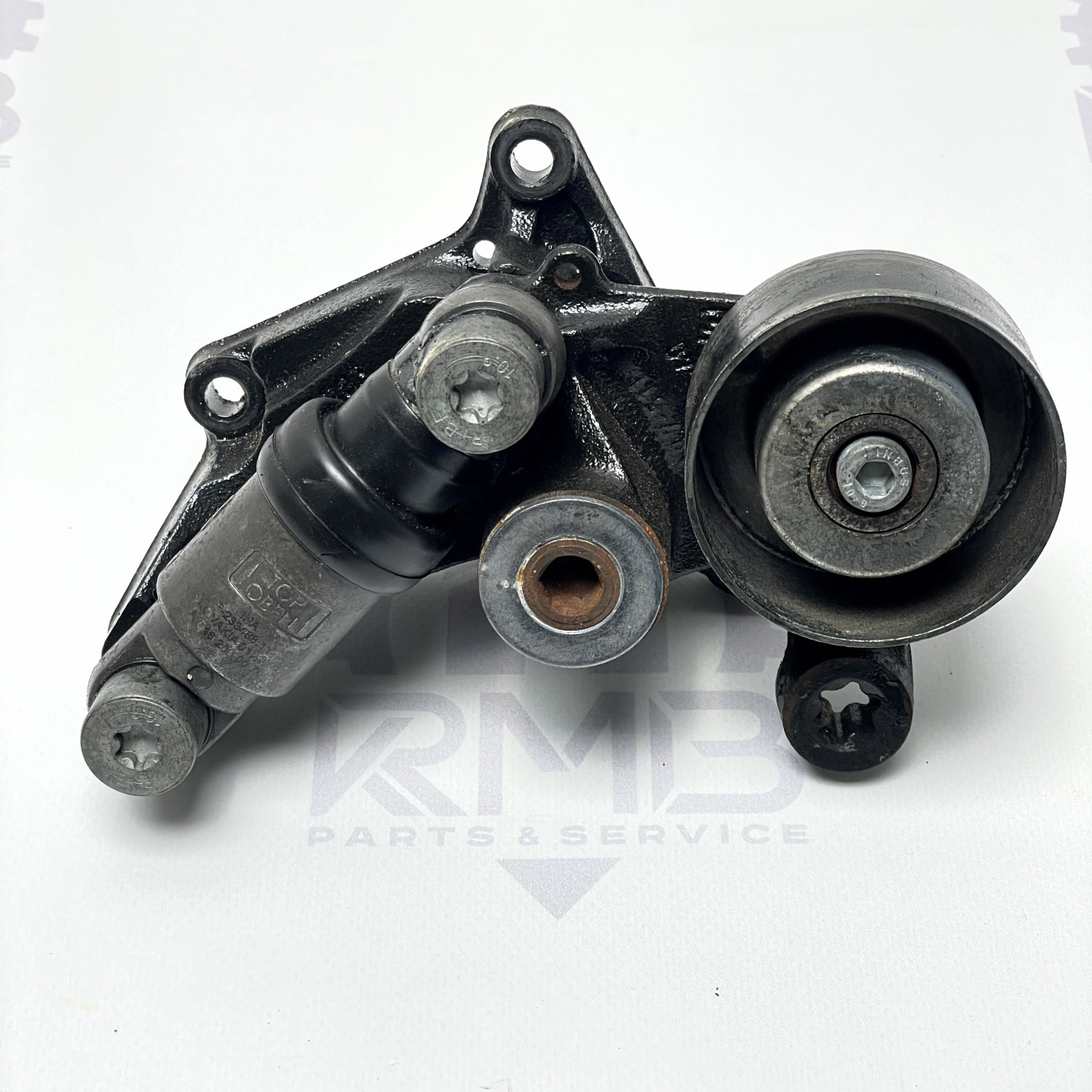 Натяжной механизм снят с автомобиля-донора без повреждений корпуса и креплений. Пружинный механизм работает нормально, ролик вращается без лишних шумов. Оригинальная деталь Mercedes полностью соответствует заводским параметрам и подходит для установки без доработок.